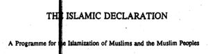 Izetbegovic’s most famous writing was, a political manifesto, “The Islamic Declaration: A Program for the Islamization of Muslims and the Muslim Peoples” [Izetbegovic, 1990]. The text was written in 1970 but was not made available to the public at large. It was illegally duplicated and circulated among Muslims, to serve as a manual and a practical instruction for the Islamic propagandist-political and organizational work of adversaries of the secular, non-islamic order. The Declaration was officially published in Sarajevo in 1990 upon collapse of the communist system. During the war in Bosnia, 1992-1995, the Islamic Declaration was printed in tens of thousands of copies and distributed to military and police units loyal to Izetbegovic [Doc Center, 2002].