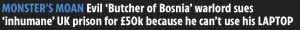 To wilfully misrepresent a legitimate right to self defence as a genocide is a big lie worthy of Dr. Goebbels himself. As a victim of such egregious injustice and inhumane treatment Dr. Karadzic might well feel entitled to a laptop in his cell.