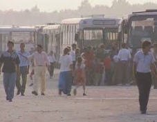 Under the gaze of international observers, Bosnian Serb forces provided buses at Potacari for at least 25,000 women and children from Srebrenica who wished to go to Muslim-held Tuzla. A small group of mostly elderly men – less than a thousand according to UN sources — were imprisoned briefly after being queried about possible involvement in war crimes by the 28th Division. Some 796 Muslim men were also allowed to make their way to Zepa, near the border with Serbia, which was itself later also captured by the Bosnian Serbs.[16]
